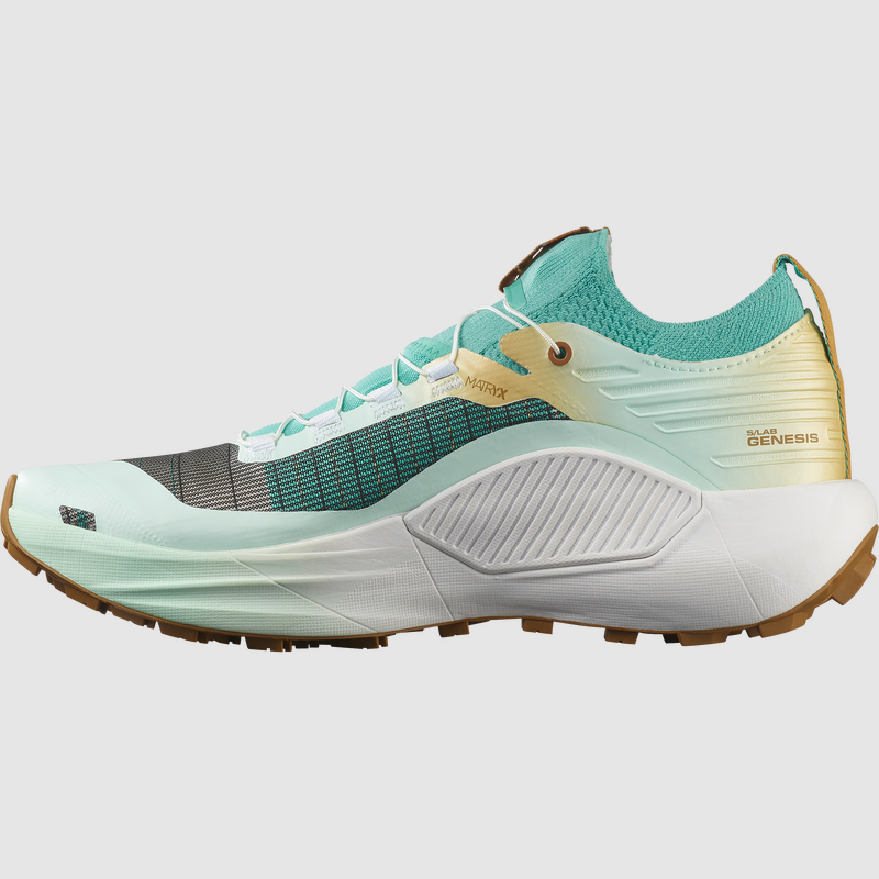La SALOMON S/LAB Genesis Limited Courtney Edition è una scarpa da trail che unisce prestazioni elevate a un design unico, frutto della collaborazione con l’atleta Courtney Dauwalter. Con un mix di colori Waterfall, White e Bay, questo modello non solo si distingue per il suo aspetto, ma è anche progettato per affrontare terreni misti e rocciosi. La sua costruzione leggera, con un peso di 258 g e un drop di 8 mm, garantisce una reattività eccezionale, mentre l’ammortizzazione massima assicura comfort anche durante le corse più lunghe. La suola All Terrain Contagrip® offre una trazione sicura su diverse superfici, mentre la tecnologia Profeel FILM funge da filtro tra il piede e il terreno, migliorando la stabilità. Dotata di un sistema di allacciatura Quicklace™, questa scarpa è facile da indossare e da togliere, rendendola perfetta per gli appassionati di trail running che cercano stile e funzionalità.